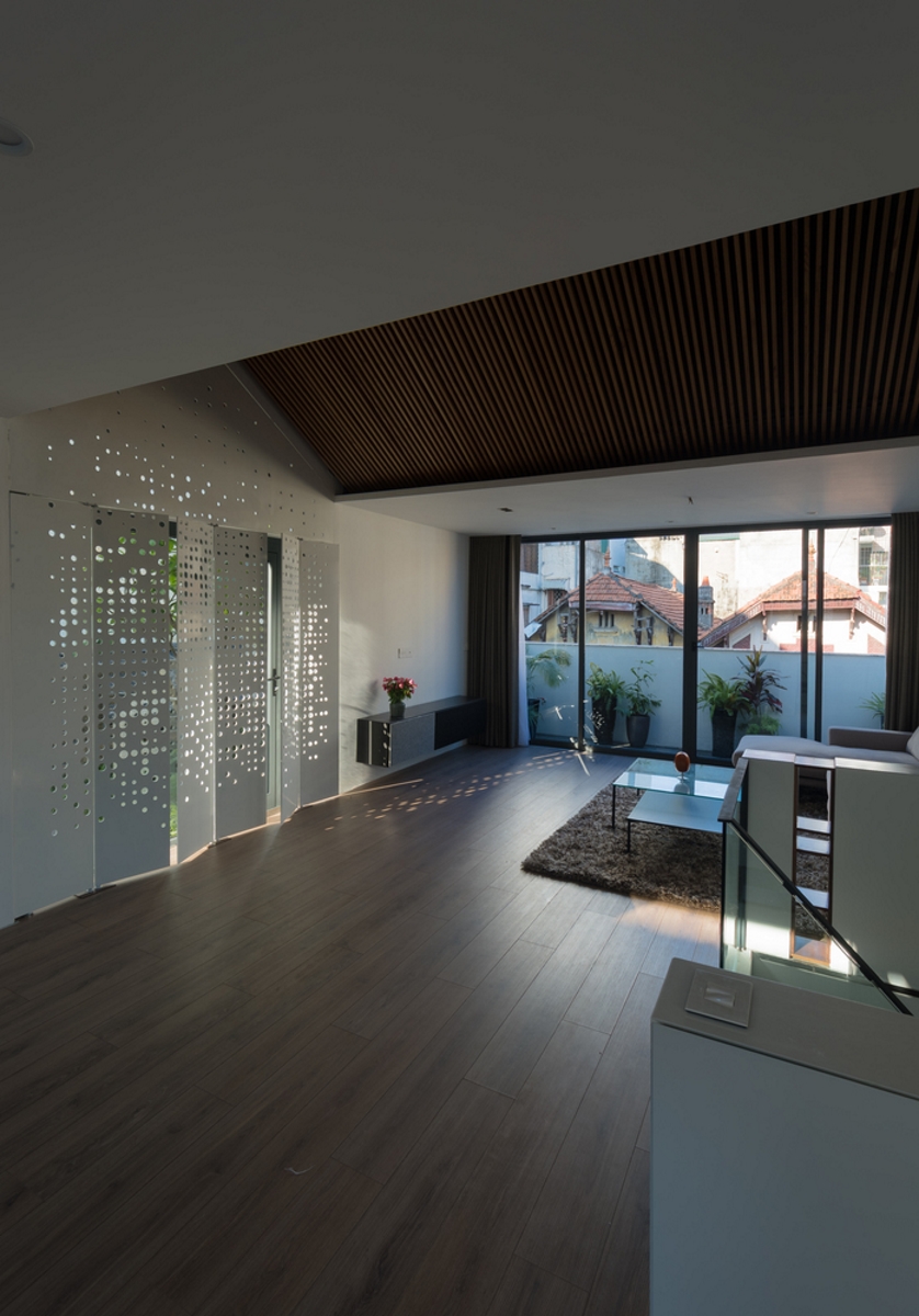 Składający się z dwóch kondygnacji Attic Apartment to projekt wietnamskiej firmy architektonicznej Tropikon. Powstał on w budynku mieszkalnym zlokalizowanym w klimatycznej, lecz zatłoczonej dzielnicy Old Quarter, na Starym Mieście. Apartament jest przykładem harmonijnego połączenia nowoczesnego stylu z naturalnymi materiałami.