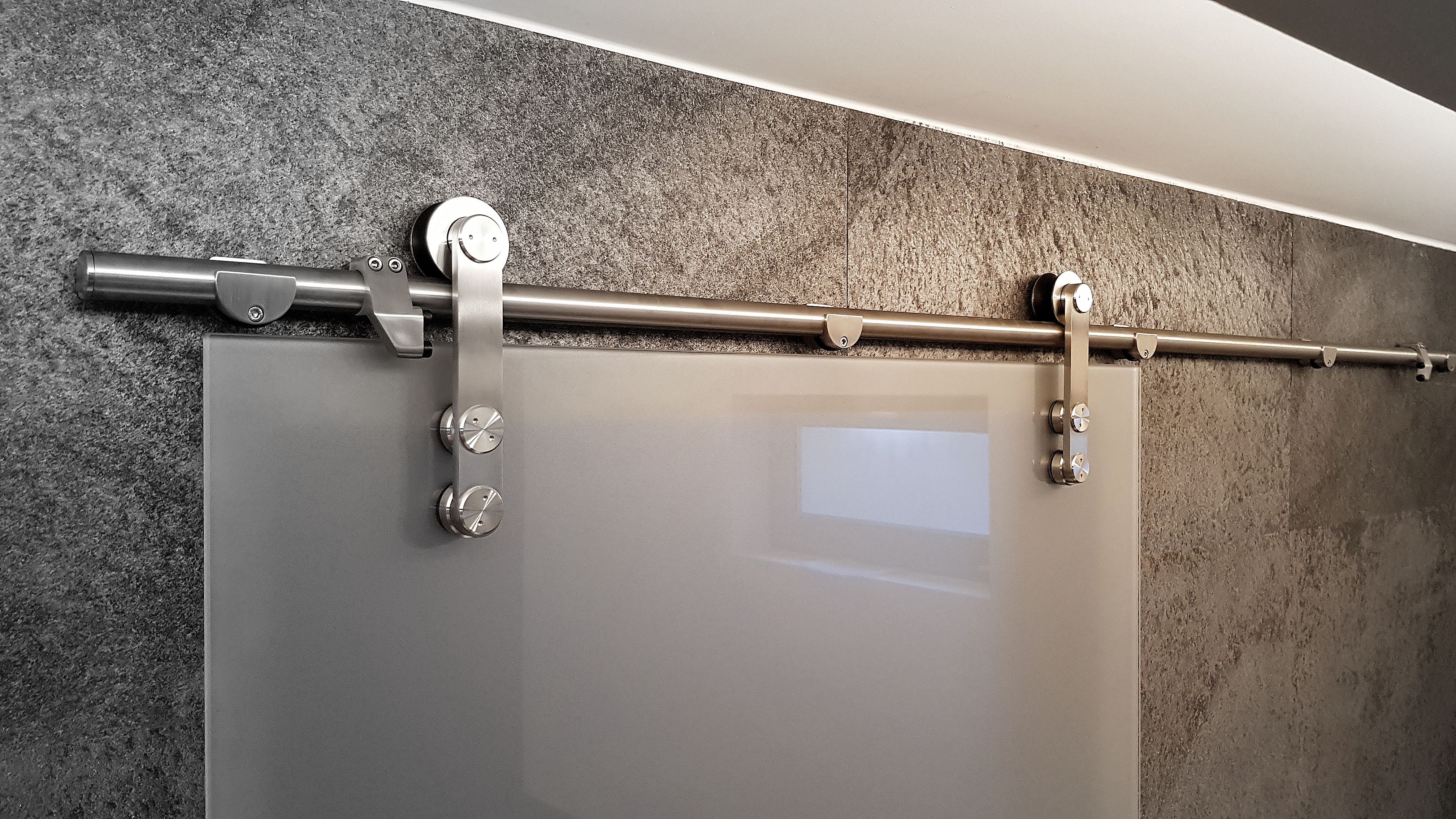 Dostępne są jednak także systemy wykonane ze stali nierdzewnej jak choćby Ragusa. Wyróżnia go industrialny design, którego nadaje mu okrągła prowadnica oraz pionowe dźwigary, pełniące jednocześnie funkcję wózków jezdnych, do których mocowane jest szkło. Jego nietypowa budowa sprawia, że jest on interesującym elementem wnętrz, szczególnie tych w surowym, loftowym stylu. Z uwagi na swoje subtelne, satynowe wykończenie, doskonale wkomponuje się w dowolną aranżację i pozwoli zamknąć nawet szerokie światło przejścia. Można zamocować go nie tylko do murowanej ściany, ale też szklanego panelu, dzięki czemu znajdzie zastosowanie zarówno w mieszkaniach, jak i biurach czy obiektach użyteczności publicznej.