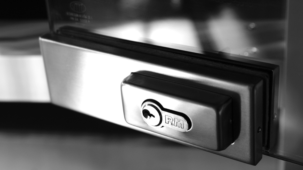 Jeżeli zależy nam na tym, by szklana konstrukcja prezentowała się delikatnie, ale wejście posiadało jednocześnie dodatkowe zabezpieczenie, warto zastosować specjalny rodzaj zamka – narożnego PL50 lub dolnego PL34 z serii Como. Charakteryzuje je niewielki rozmiar oraz możliwość zamocowania na dolnej krawędzi szkła, dzięki czemu nie rzucają się w oczy i nie zaburzają ekspozycji tafli.