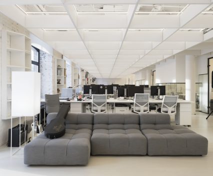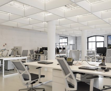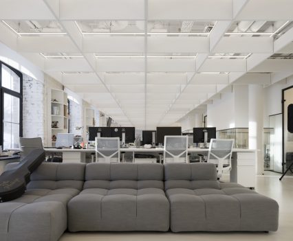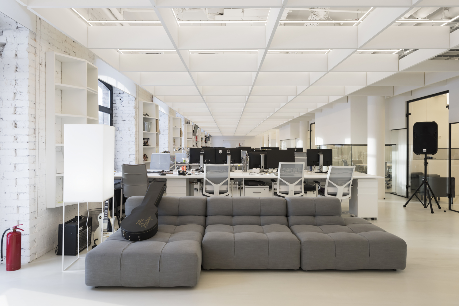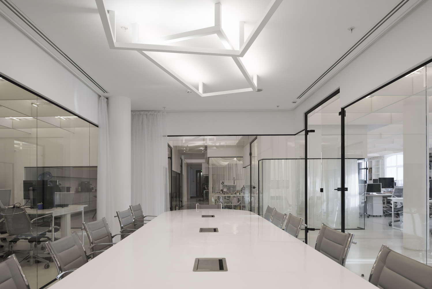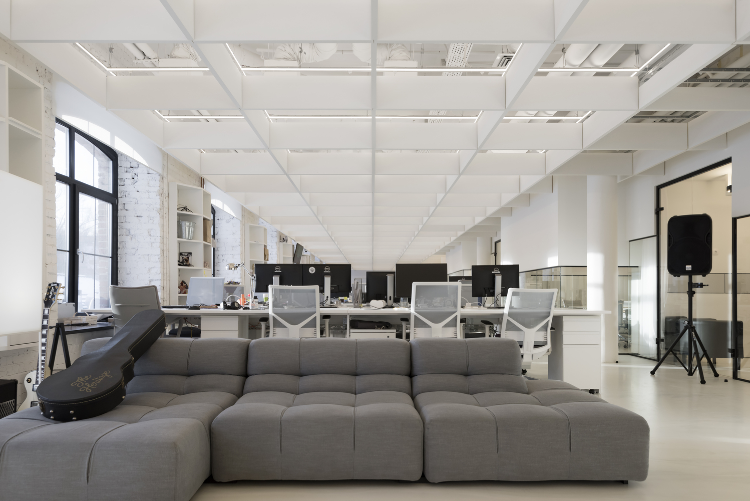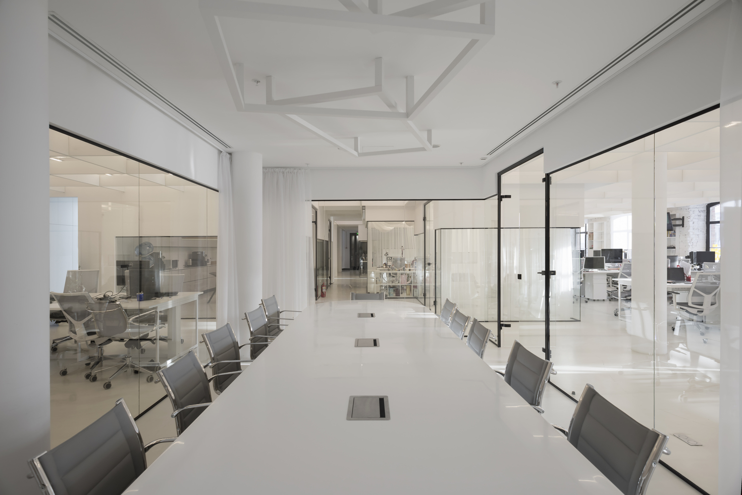 Zastosowanie szkła w aranżacji wnętrza pozwoliło na wydzielenie wielu stanowisk pracy, bez utraty przestronności oraz optycznej lekkości. Zachowany został także surowy, minimalistyczny styl wnętrza, zaś wykorzystane w projekcie kolory, w tym głównie szary, czarny oraz biel, nadają przestrzeni profesjonalnego, eleganckiego charakteru.