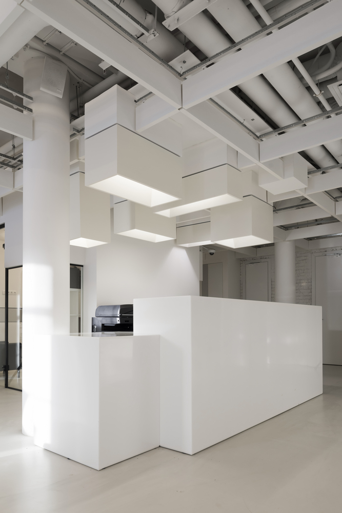 Rezultatem prac było powstanie nowoczesnego, minimalistycznego biura, charakteryzującego się oszczędnością zastosowanych form, struktur oraz kolorów. Surowość wnętrza podkreślają szklane konstrukcje zamocowane z pomocą okuć w czarnym, matowym odcieniu oraz pomalowane na biało ściany. Takie zestawienie, w postaci jasnych płaszczyznach oraz ciemnych listew, przywodzi na myśl geometryczną bryłę. Efekt ten potęgują gładkie blaty mebli, przeszklone sale konferencyjne w kształcie sześcianów oraz przestrzenne, prostokątne konstrukcje podwieszone pod sufitem.