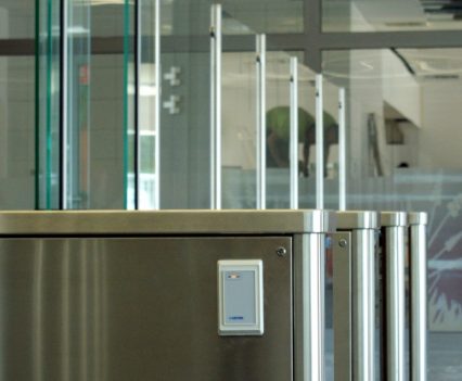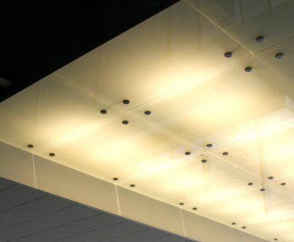 Z pomocą naszych produktów zaaranżowane zostało także foyer. Do montażu podwieszanego i jednocześnie podświetlanego sufitu wykorzystano okucia punktowe Piemonte, które przymocowano do szyn. Z kolei z pomocą niewielkich elegancki okuć stworzono podwyższone szklane balustrady, wyznaczające miejsce kolejki do określonych bramek wejściowych. Odpowiedni dobór okuć pozwolił na pełną ekspozycję szkła. Natomiast ze względu na optyczną lekkość konstrukcji, sam hol nie utracił na poczuciu przestronności.